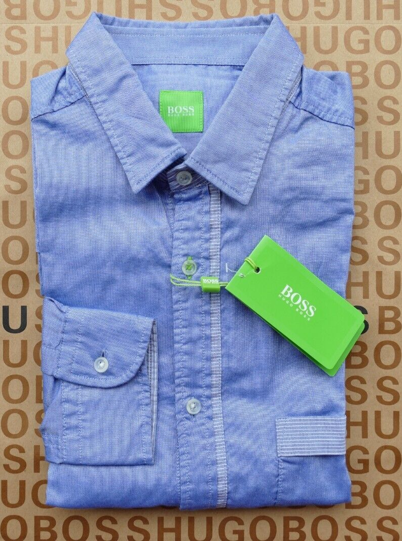 New Hugo BOSS mens long sleeve slim casual smart suit striped jeans shirt LARGE