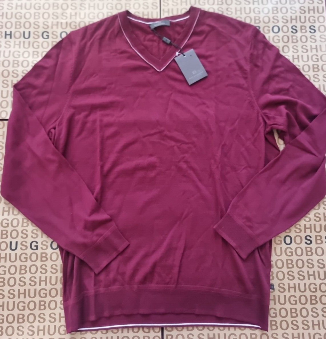 New Hugo Boss Selection red burgundy thin knit mens jeans pullover jumper top XL