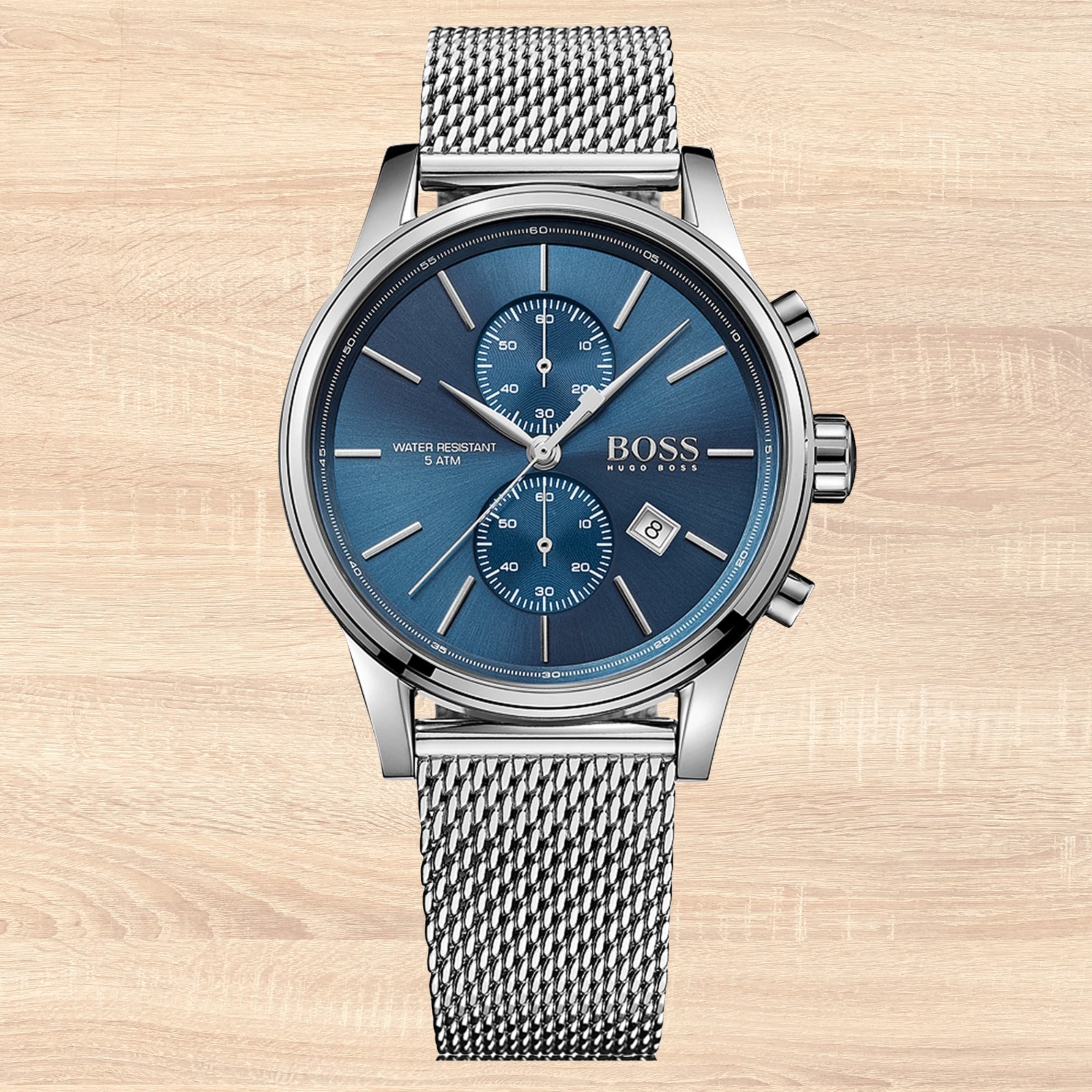 HUGO BOSS JET HB1513441 Blue Dial Silver Mesh Strap Chronograph Mens Watch 41mm