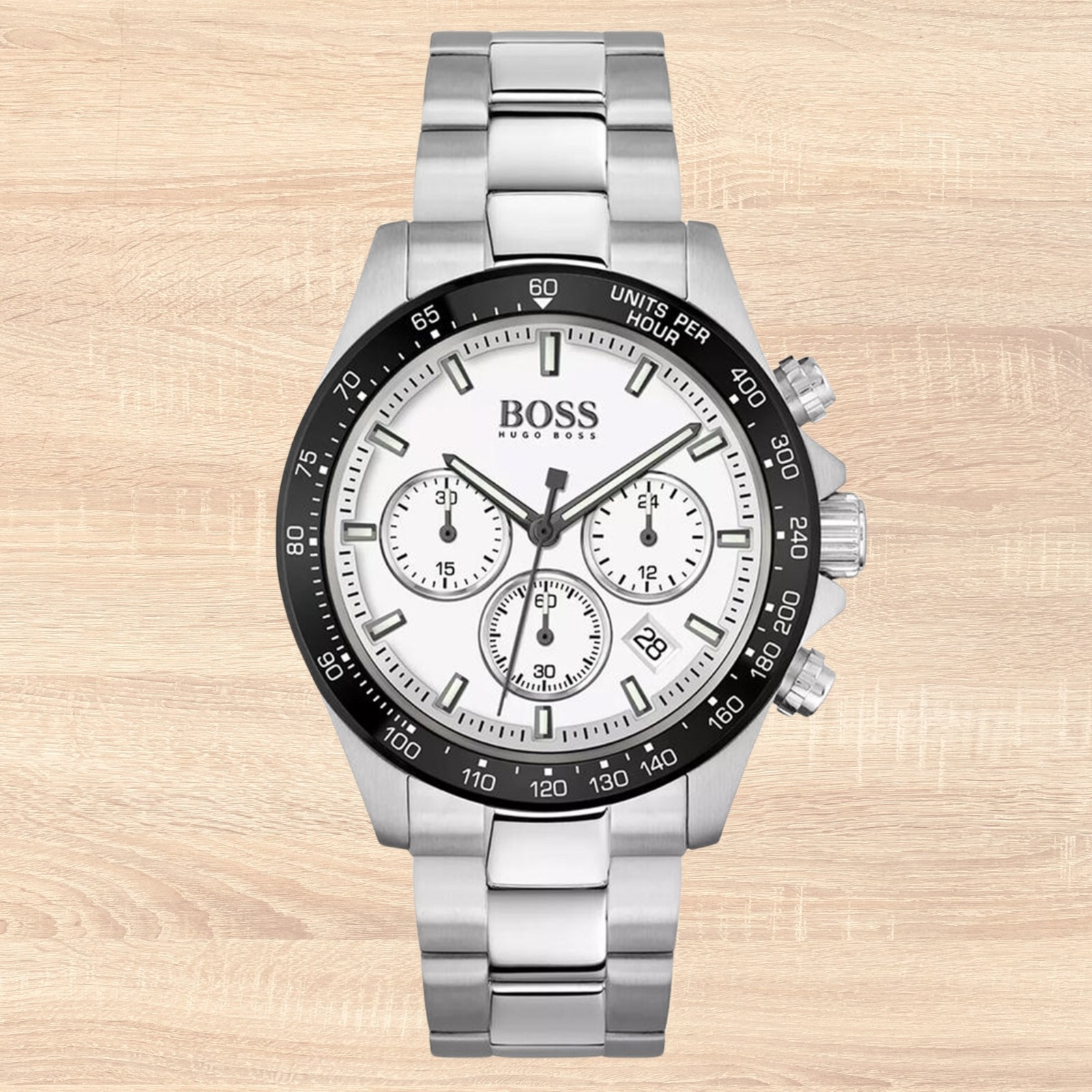 Hugo Boss HB1513875 Men’s Chronograph Watch White Dial Black Bezel Steel