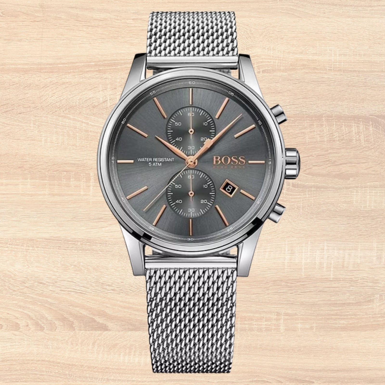 Hugo Boss HB1513440 Men’s Chronograph Watch Grey Dial Mesh Bracelet Stainless