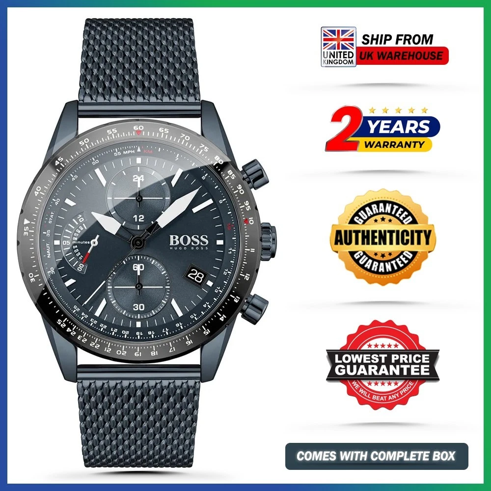 HUGO BOSS Pilot Edition HB1513887 Blue Mesh Strap Dial Chrono Mens Watch 44mm