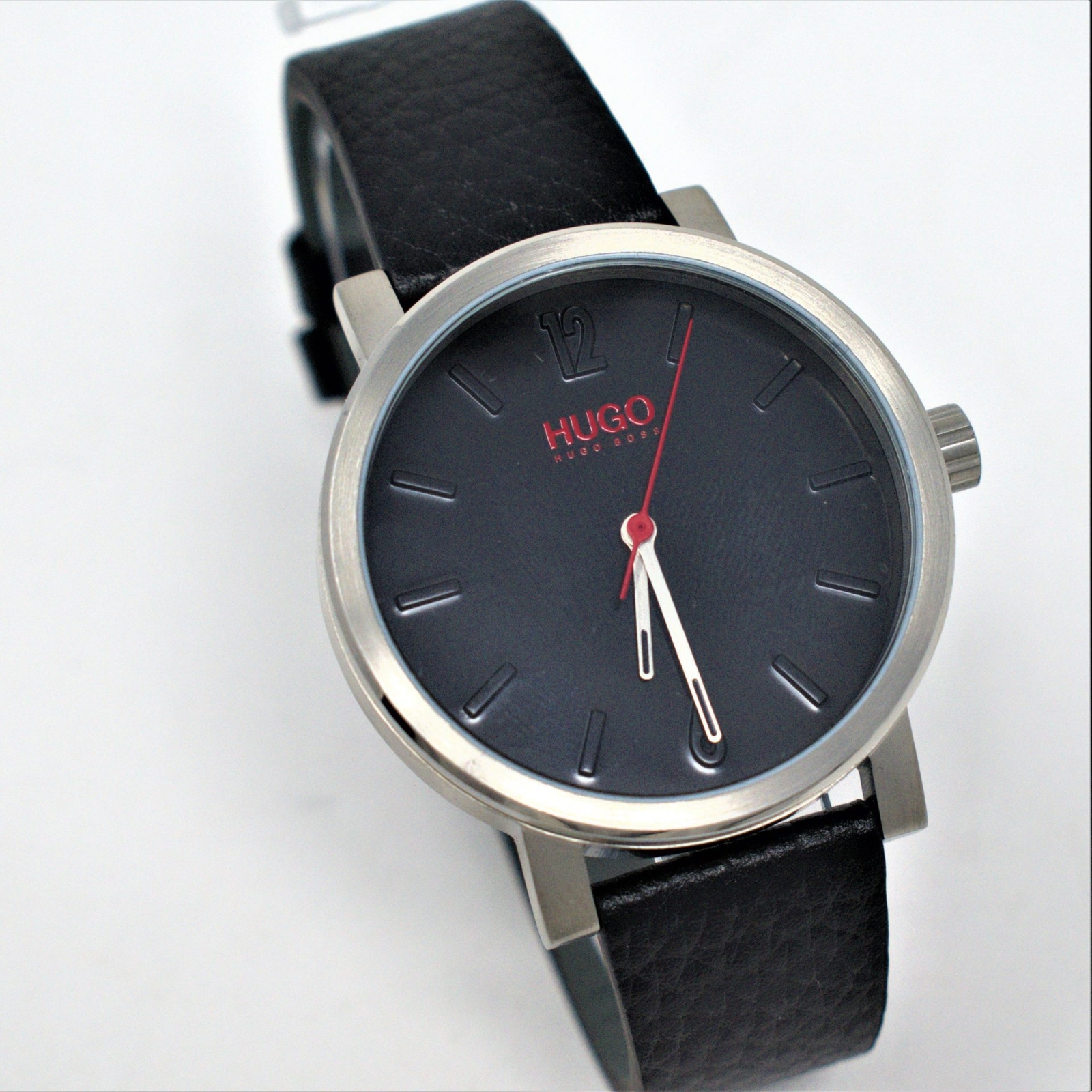 HUGO BOSS MENS BLACK LEATHER STRAP BLACK DIAL DRESSING WATCH, HB2251 NEW IN BOX.