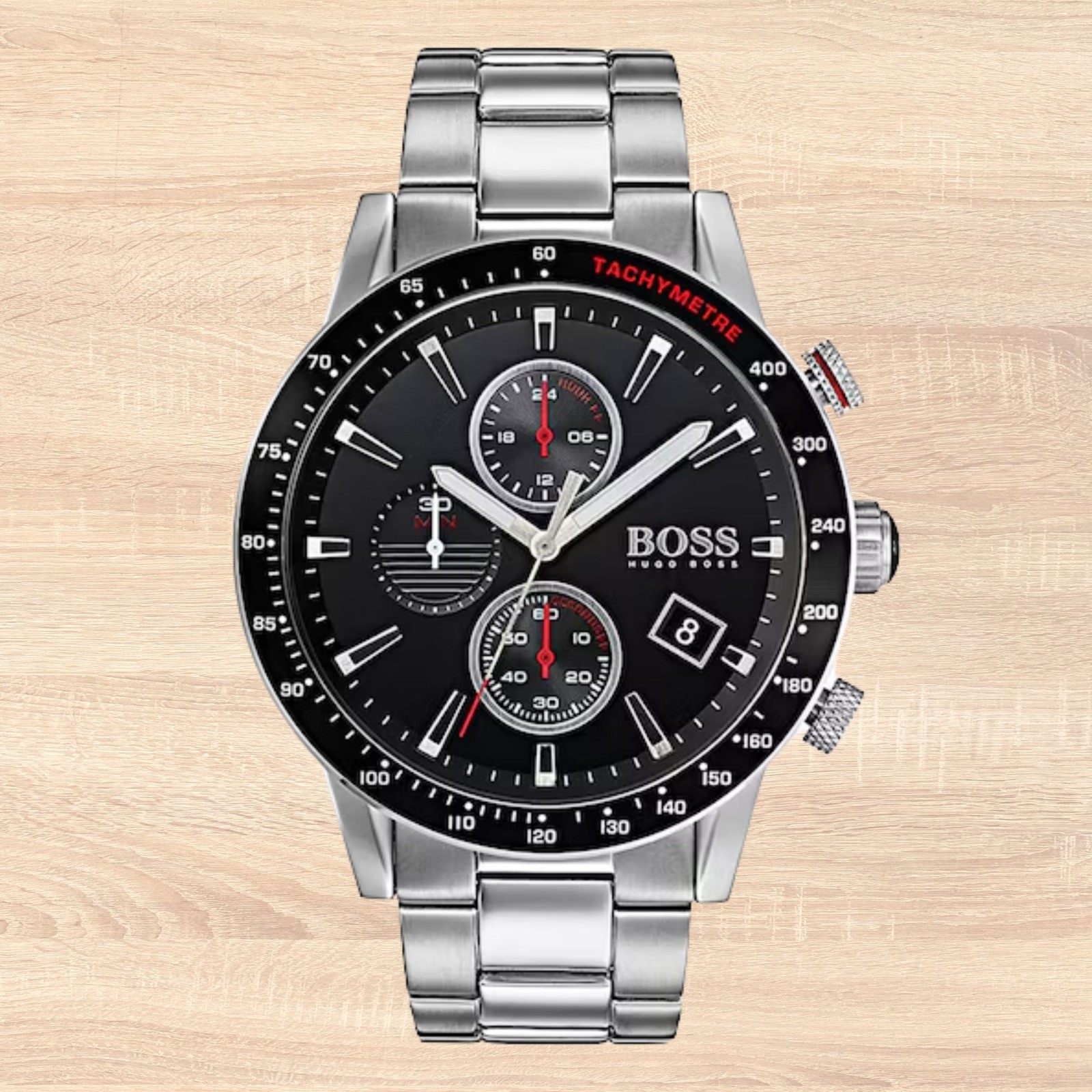 Hugo Boss HB1513509 Rafale Mens' Silver & Black Chrono Stainless Watch + Bag