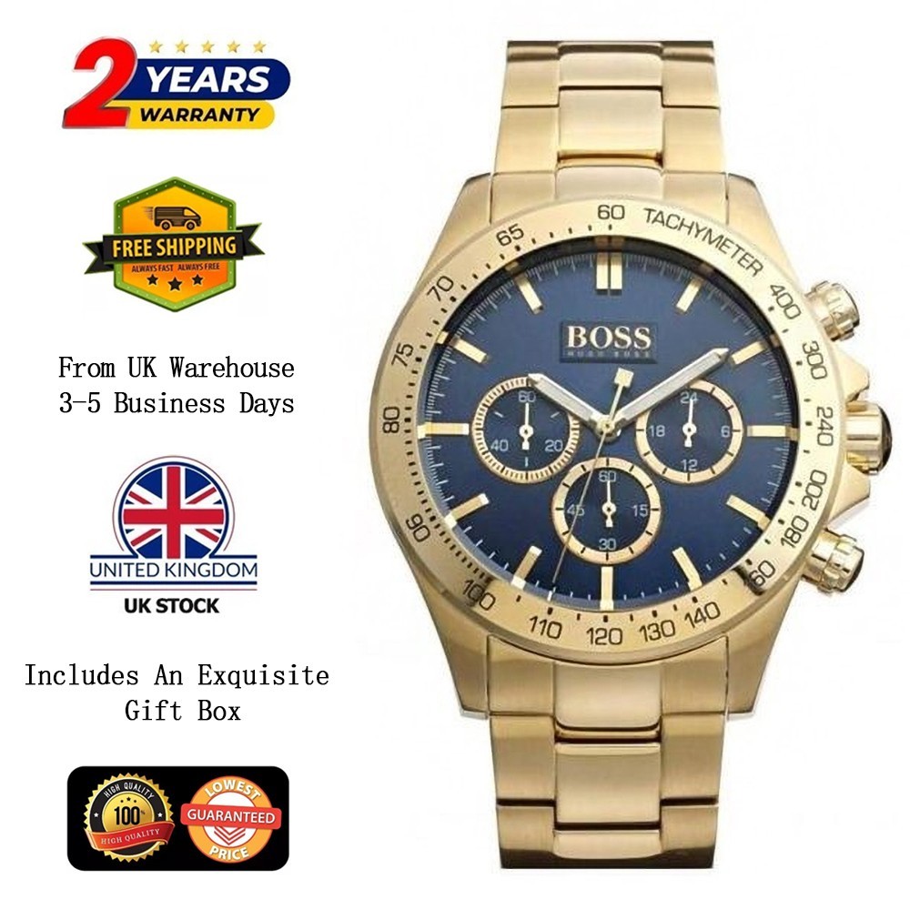 NEW HUGO BOSS 1513340 MENS IKON STEEL GOLD BLUE DIAL CHRONOGRAPH WATCH GIFT
