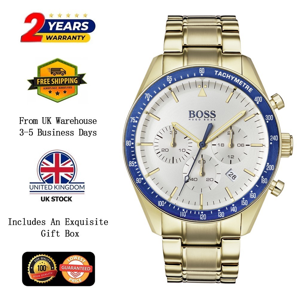 NEW HUGO BOSS 1513340 MEN'S STAINLESS STEEL GOLD STRAP & BLUE DIAL 44MM