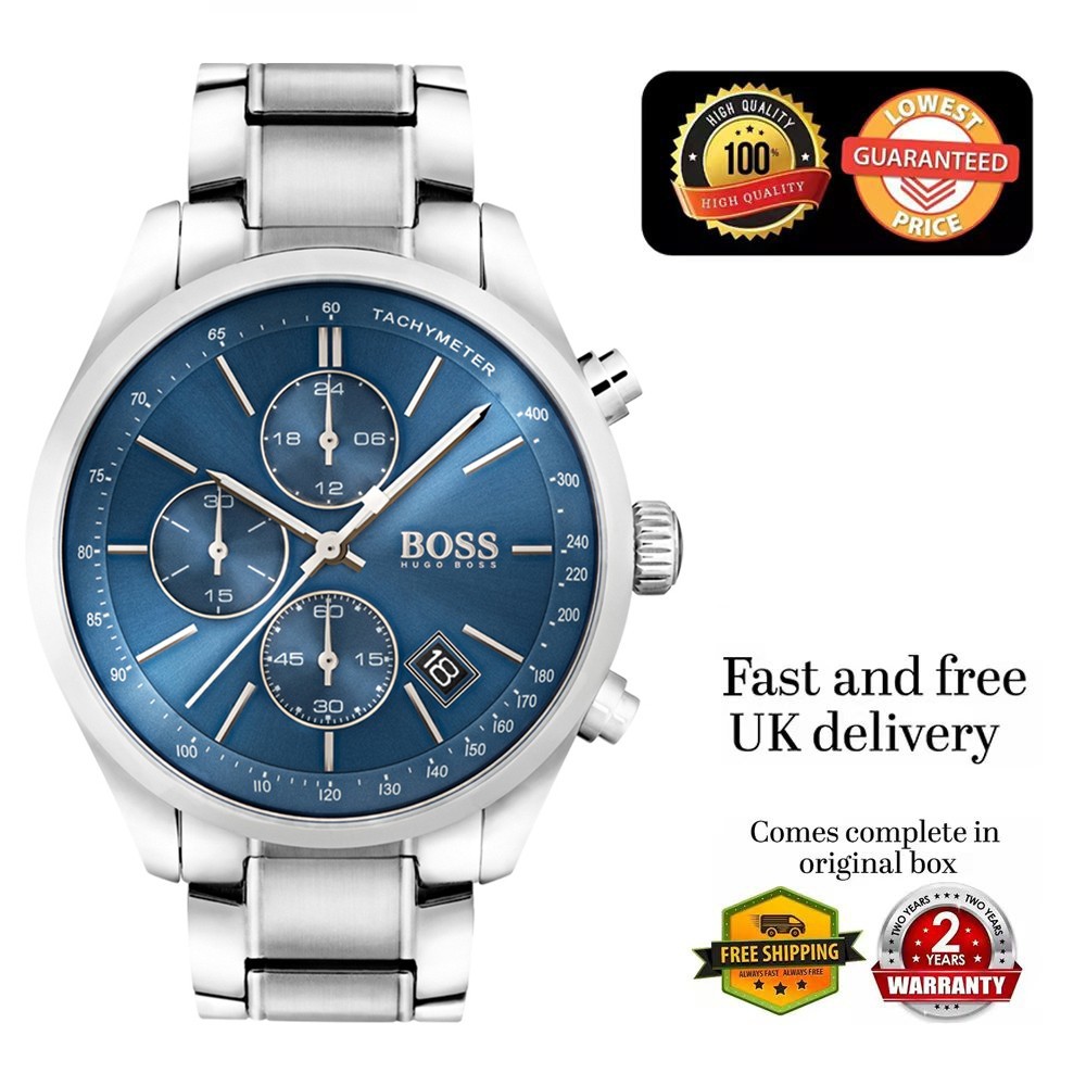 NEW HUGO BOSS 1512962 TROPHY MENS WATCH STAINLESS STEEL BLUE DIAL