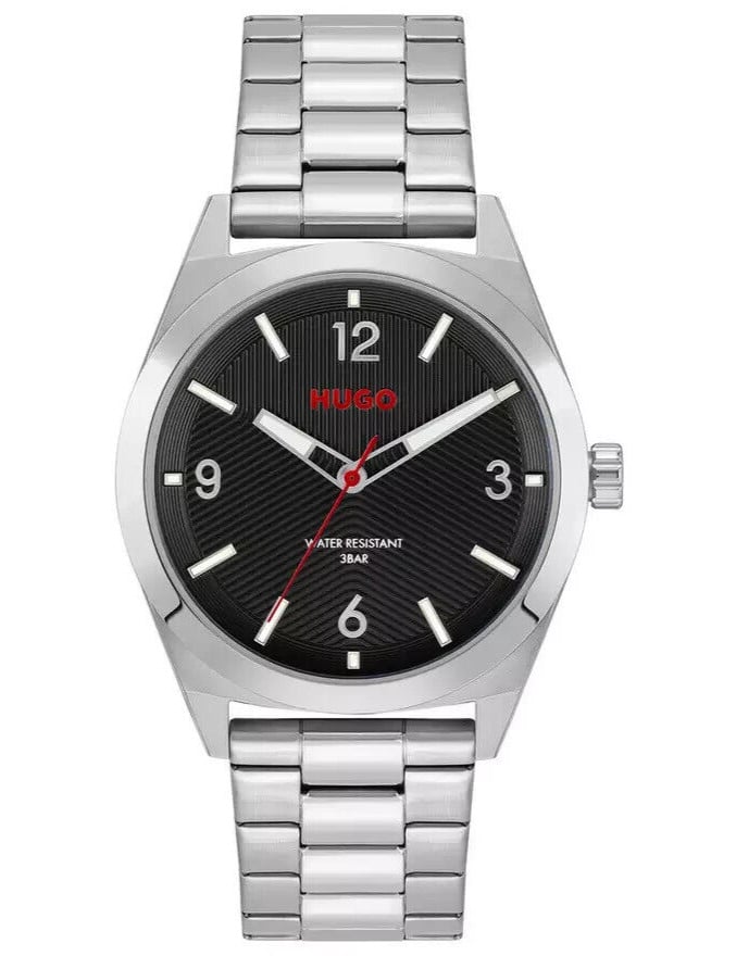 HUGO #First Men's Stainless Steel Quartz Watch - 43MM - Water Resistant - Fashion Wristwatch - Gift for Men, Black, Minimalist