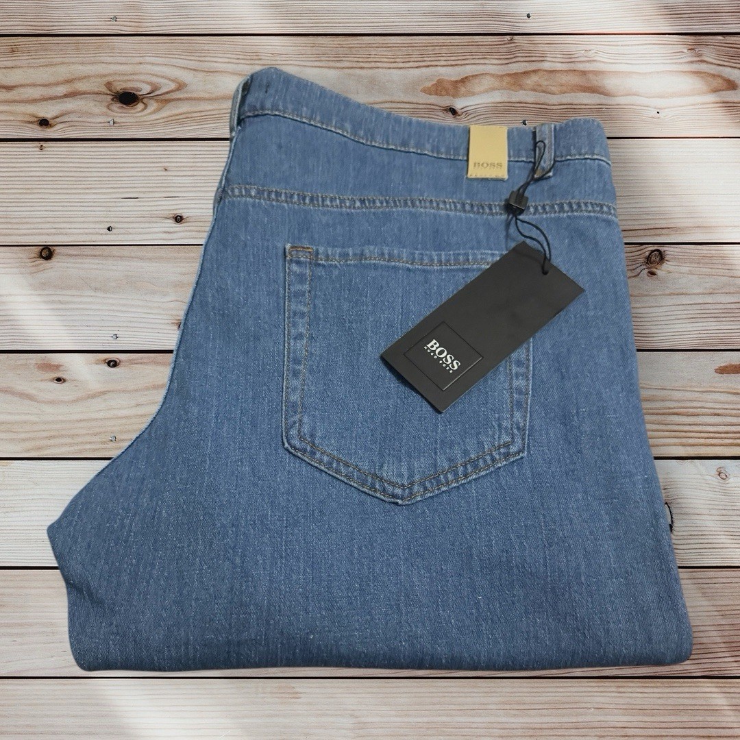 New Hugo Boss mens designer blue slim fit denim jeans trouser Delaware 38w 34L