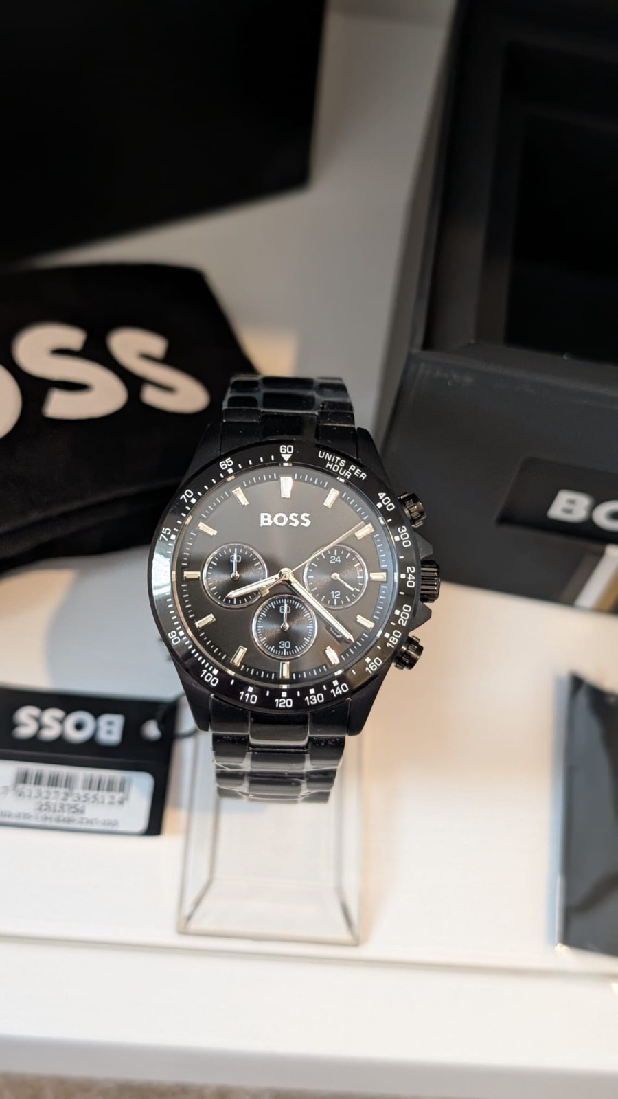 New HUGO BOSS HB1513440 Jet Black Dial Mesh Strap Chronograph Men's Watch 40mm