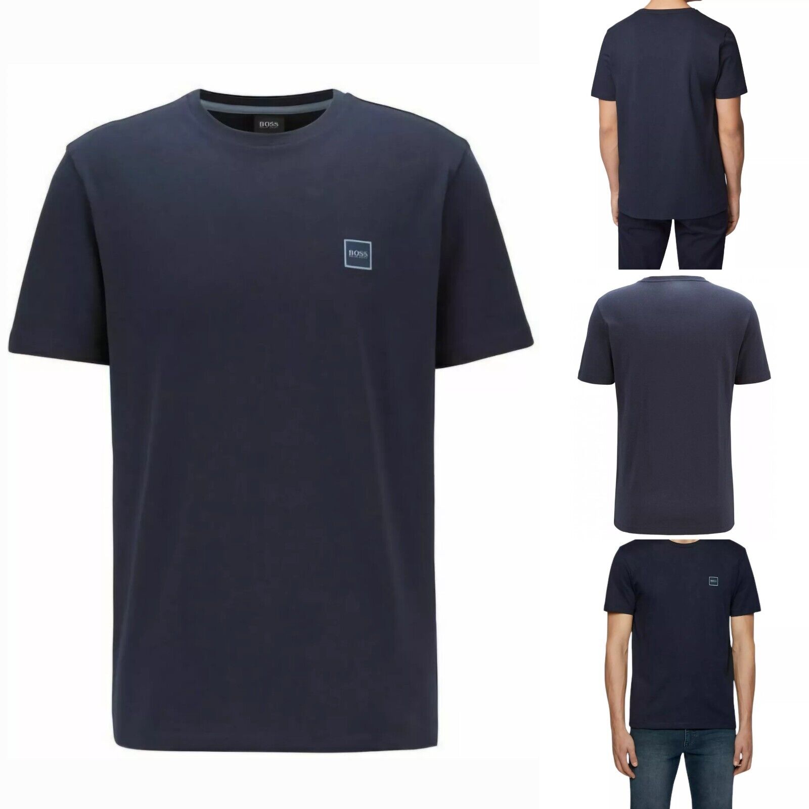 HUGO BOSS T-Shirt Mens Small Navy Blue Crew Neck Chest Logo 100% Cotton BNIB