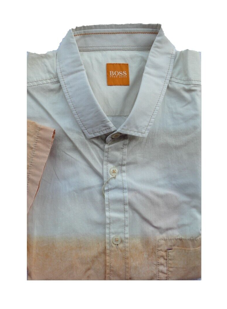 New Hugo BOSS mens pastel orange regular fit short sleeve shirt LARGE £99