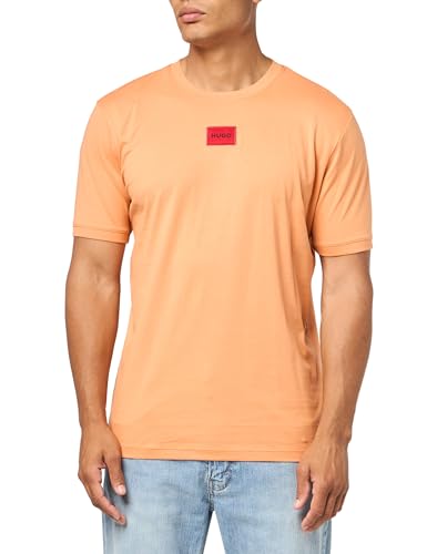 HUGO Men's Ribbed Crew Neck Regular Fit Center Logo T-Shirt, Tuscany Orange, XL