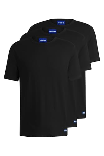 HUGO Mens BLUE3 Naolo Three-Pack of Logo-Detail T-Shirts in Cotton Jersey Black