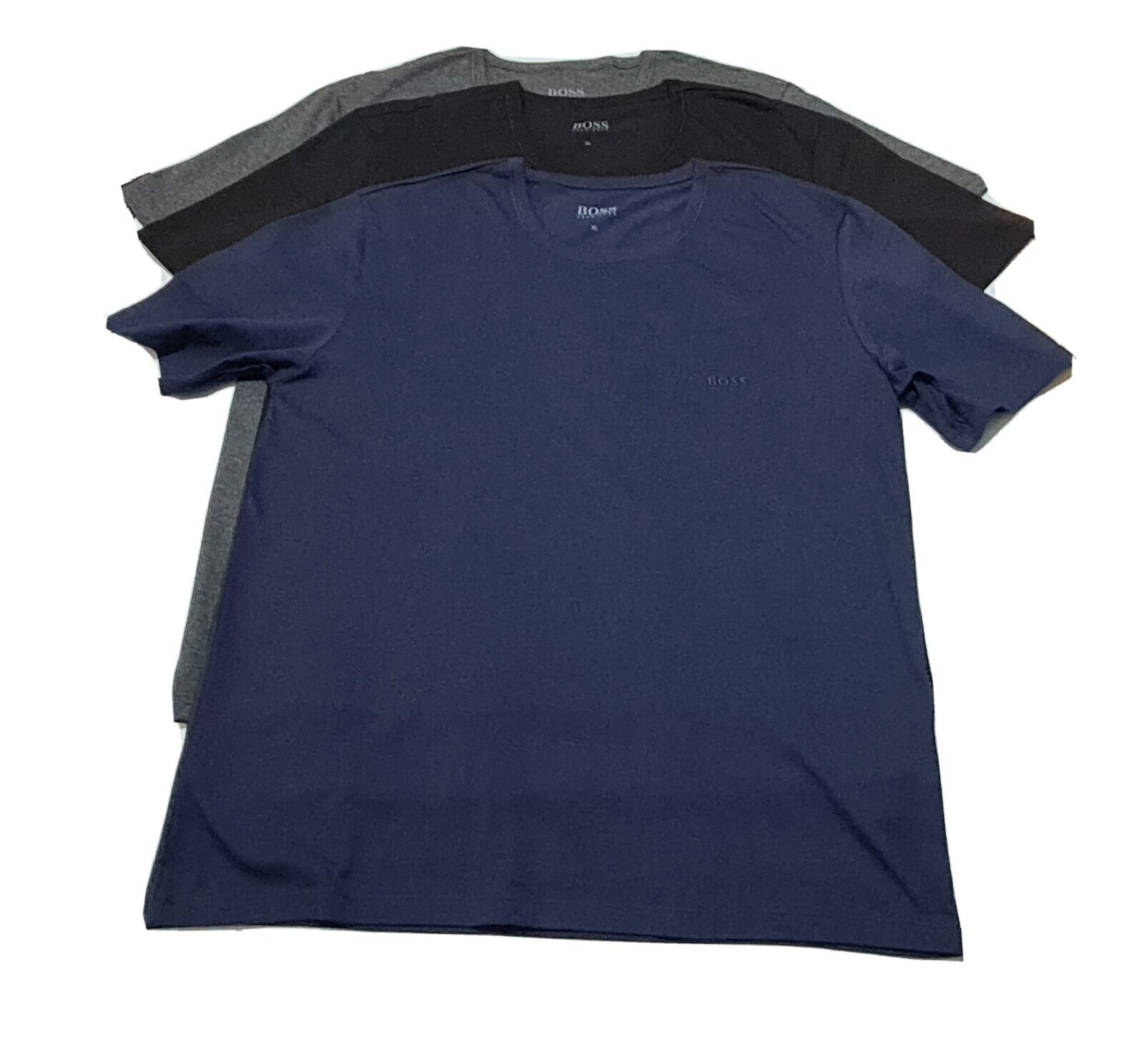 BOSS Men's 3-Pack Crew Neck Cotton Jersey T-Shirts, Blue Navy, Dark Grey, Blk M