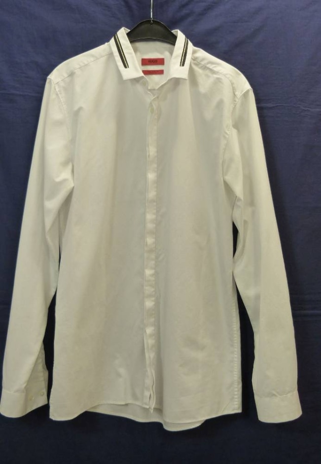 New Hugo BOSS mens white long sleeve slim casual smart suit striped shirt LARGE