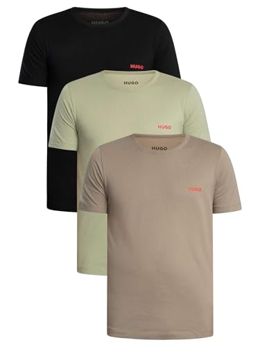 HUGO Mens T-Shirt RN Triplet P Triple-Pack of Cotton Underwear T-Shirts with Logo Print