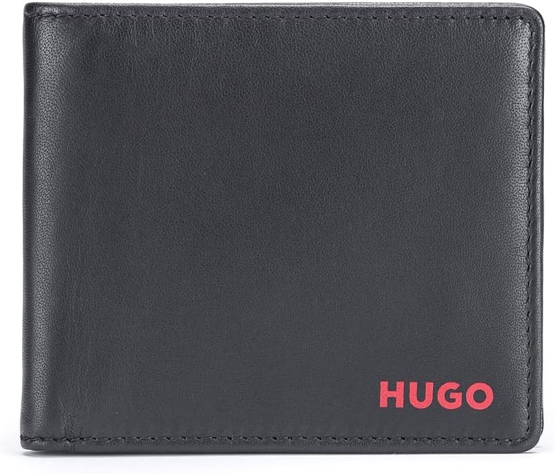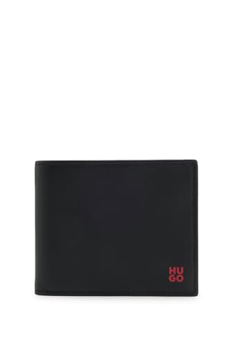 HUGO Mens Tibby N Leather Wallet with red Stacked Logo and Coin Pocket