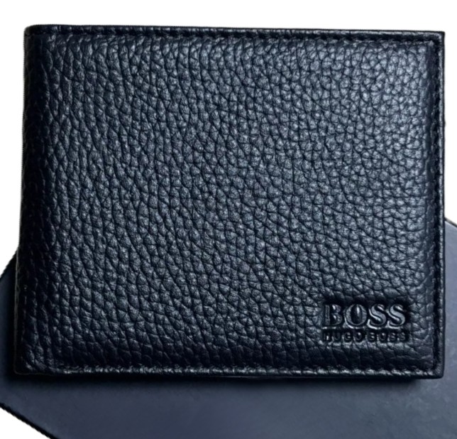 BRAND NEW MEN HUGO BOSS VICTORIAN TRIFOLD BLACK LEATHER WALLET WITH COIN POCKET