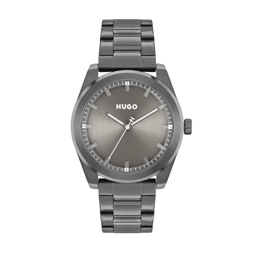 HUGO Men's Watch, #LEAP Quartz with Ionic Plated Grey Steel Bracelet, Grey Dial, 45mm, Model: 1530247