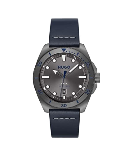 HUGO Analogue Quartz Watch for Men #Visit Collection with Blue Leather Strap - 1530302