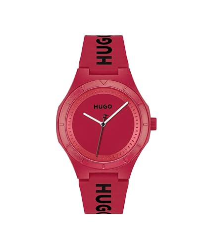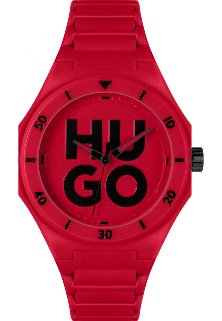 HUGO Analogue Quartz Watch for Men #LIT FOR HIM Collection with Red Silicone Bracelet - 1530346