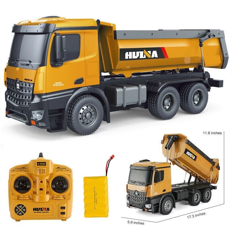 HUINA RC TIPPER/DUMP TRUCK 2.4G 10CH WITH DIE CAST CAB, BUCKETS AND WHEELS