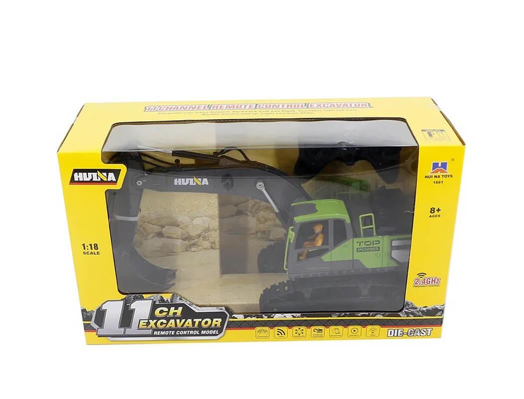 Huina 2.4G 11Ch Rc Excavator Green 680° Turntable W/Smoke
