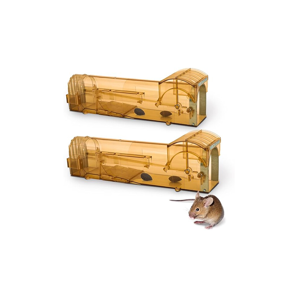 KEPLIN Humane Mouse Trap Safe No Kill Design, Easy to Clean, Reusable, Yellow, 2 Pack