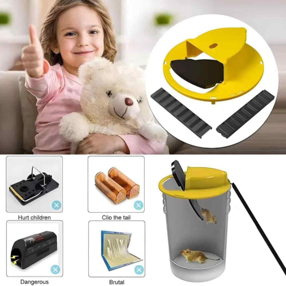 Rodent Trap Bucket Lid, Reusable Humane Mouse Trap for Indoor Outdoor Applications, Multi-Catch Automatic Reset Design with Effective Natural Food