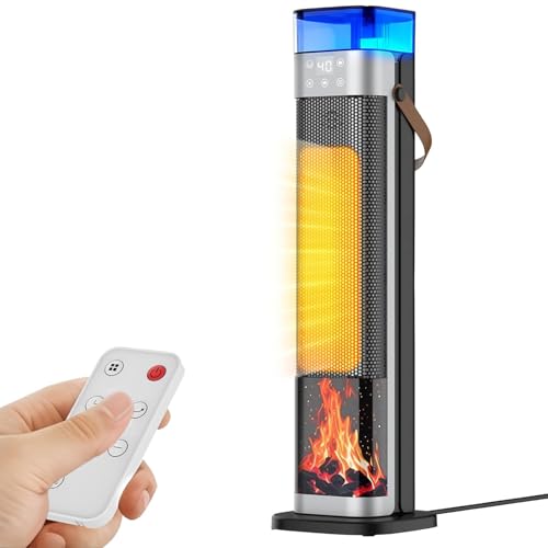 Electric Heater,2000W Ceramic Tower Heater,with Humidifier & Realistic Flame Effect,Quiet Electric Heater for Home, 3 in 1 Fan Heater and Cooler, Energy Efficient Space Heaters for Indoor Use