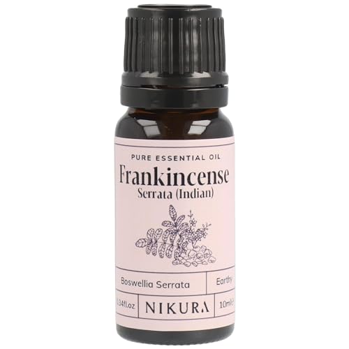 Nikura Indian Frankincense (Serrata) Essential Oil - 10ml | 100% Pure Natural Oils | Perfect for Aromatherapy, Diffusers, Humidifier, Bath | Great for Self Care, Skin | Vegan & UK Made