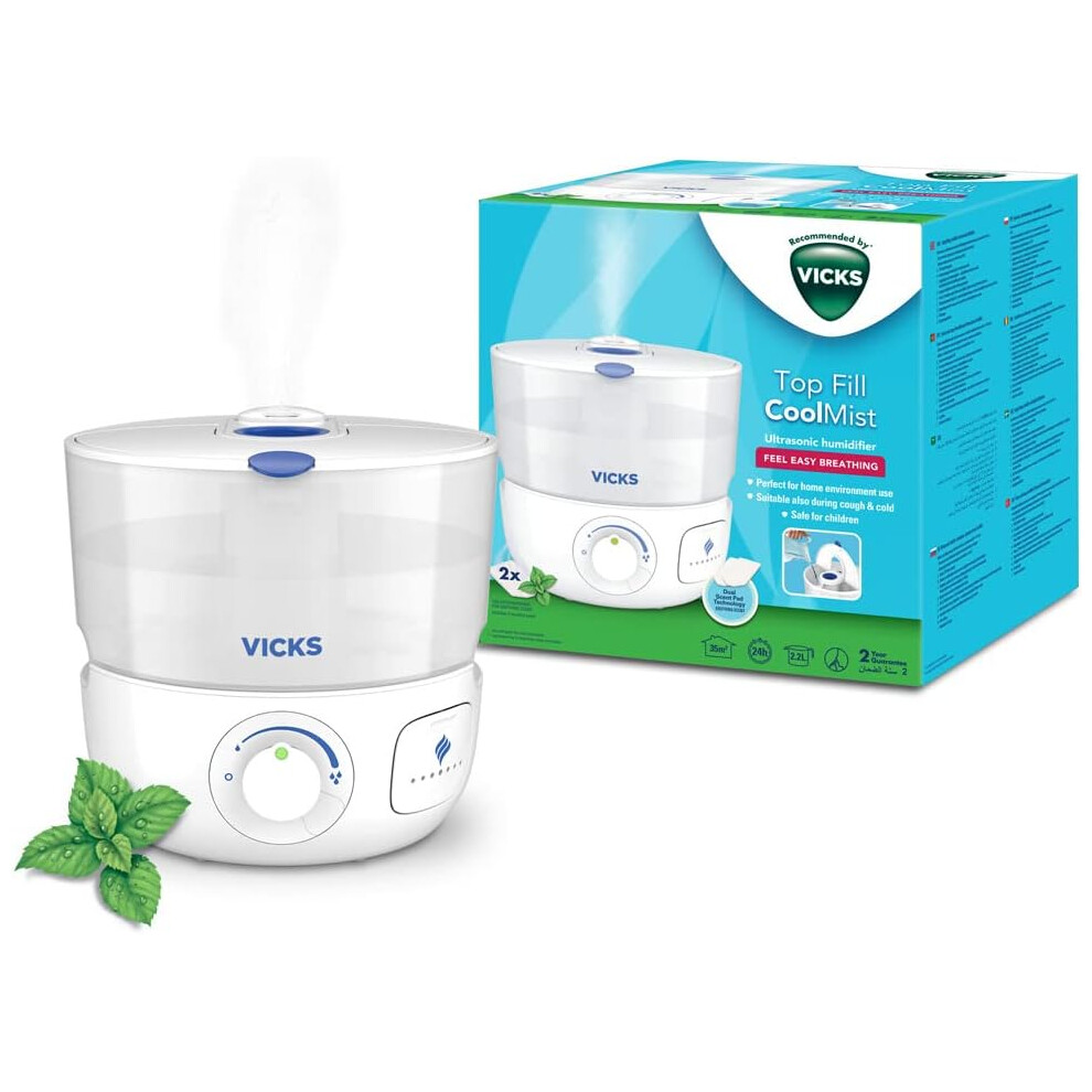Vicks Top Fill Cool Mist Ultrasonic Humidifier For Easy Breathing+ VapoPads 2.2L