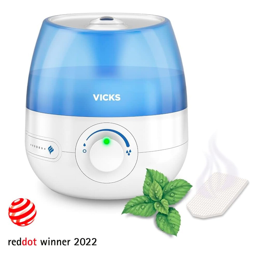 Vicks Mini Cool Mist Ultrasonic Humidifier for Bedrooms Quiet 24h Runtime