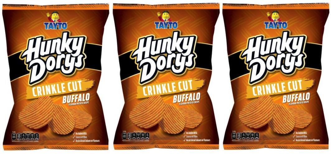 3 bags of Tayto Hunky Dory's Crinkle Cut Buffalo Flavour Potato Crisps 130g each