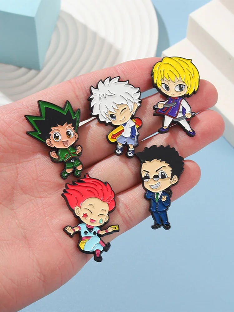 5PCS HUNTER x HUNTER Enamel Badges Cute Manga Brooch Kawaii Animation Pins Anime Badge for Backpack Clothing Lapel Cosplay Toy