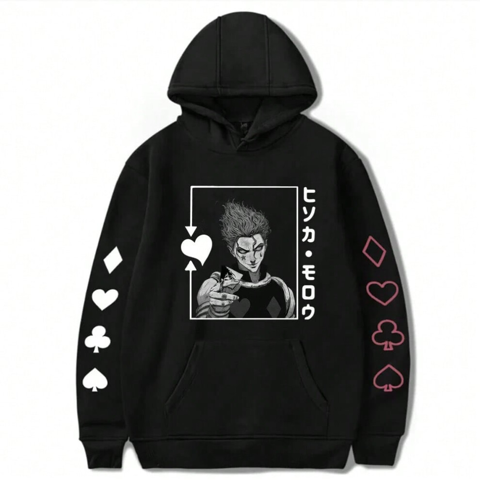 (black, S) Hisoka Hunter X Hunter Anime Hoodie Harajuku Manga Fun Black and White Patterns Neutral Fashion Streetwear Oversized Sports Top