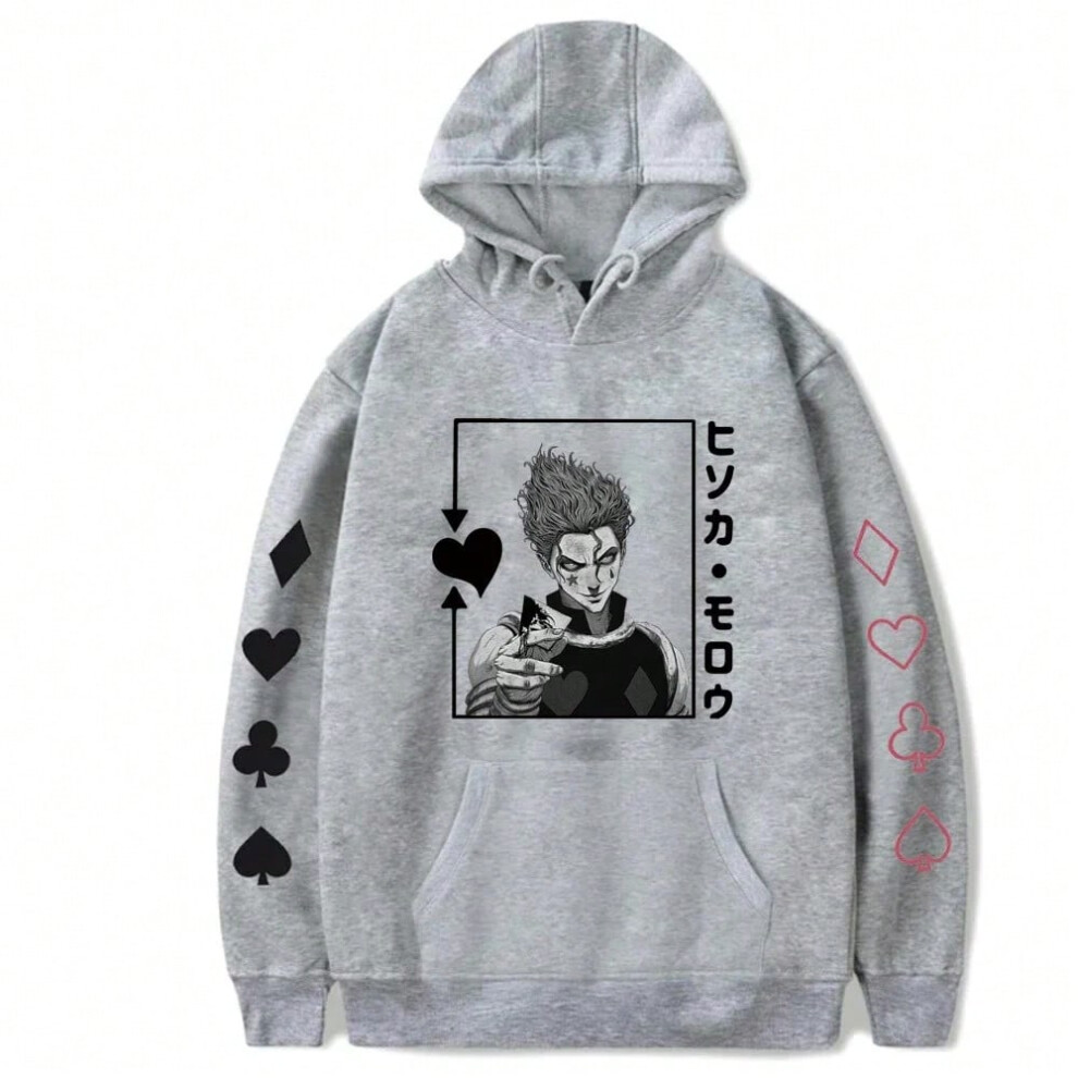 (gray, M) Hisoka Hunter X Hunter Anime Hoodie Harajuku Manga Fun Black and White Patterns Neutral Fashion Streetwear Oversized Sports Top
