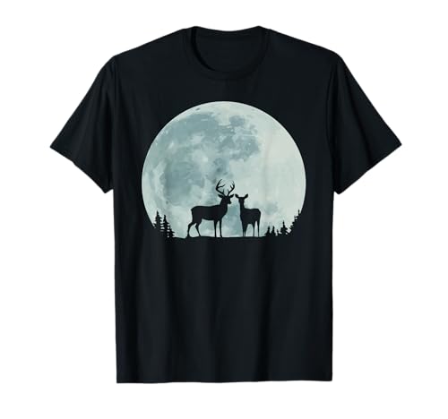 Full Moon Deer Woods Hunting Hunter White Tail Deer Moose T-Shirt