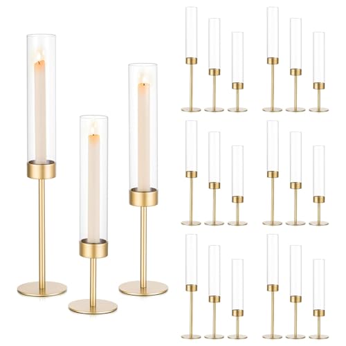 Sziqiqi Hurricane Candle Holder for Wedding: 18 Pcs Gold Candlestick Holders with Glass Cylinder for Table Centerpieces - Candle Stick Holder Bulk for Party Event Reception Engagement Decor