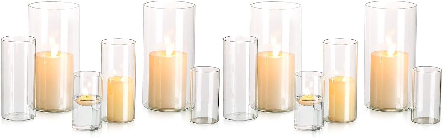 Hurricane Candle Holder Glass Cylinder: Set of 4 (12Pcs) Flower Vase for Tea Li