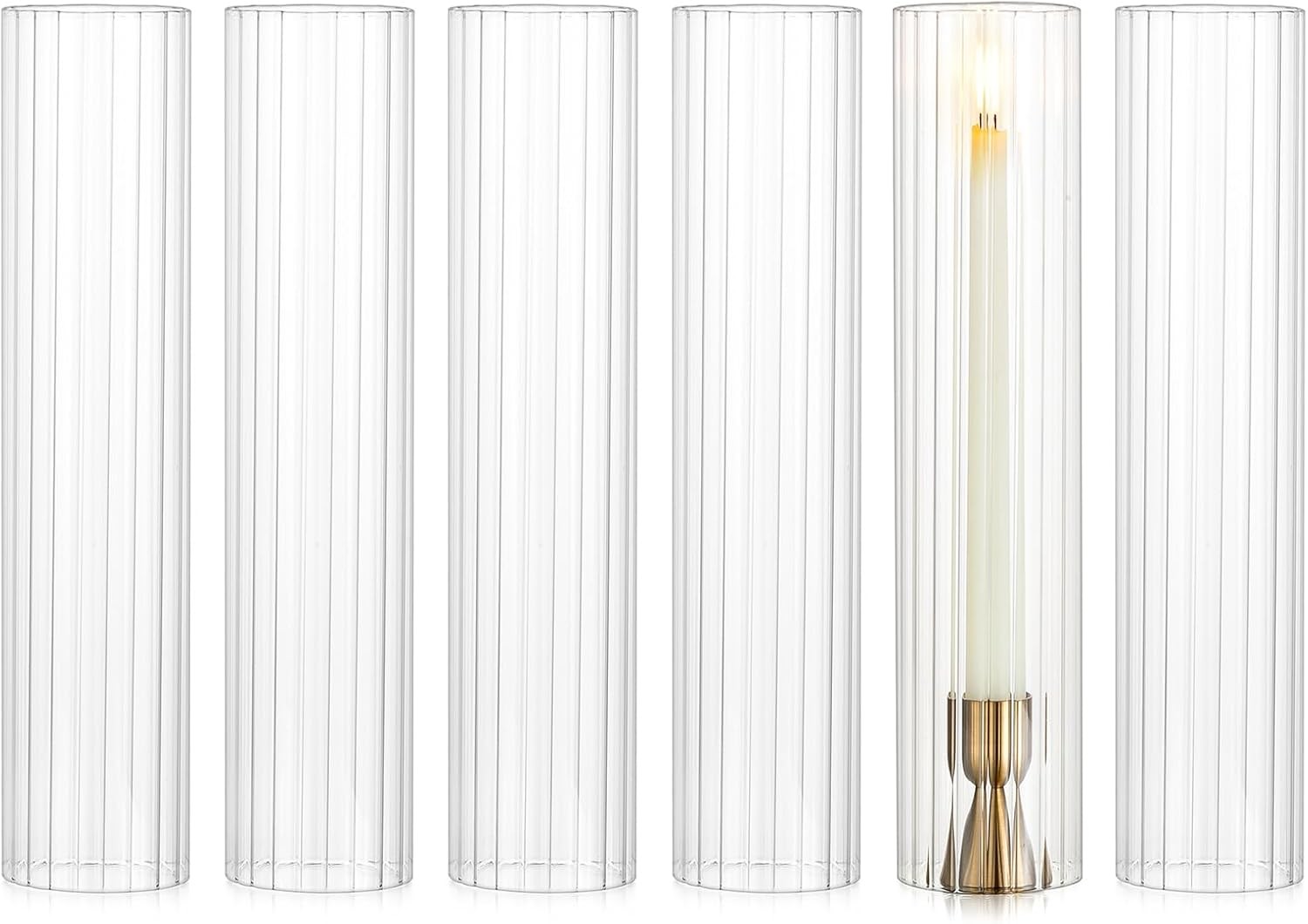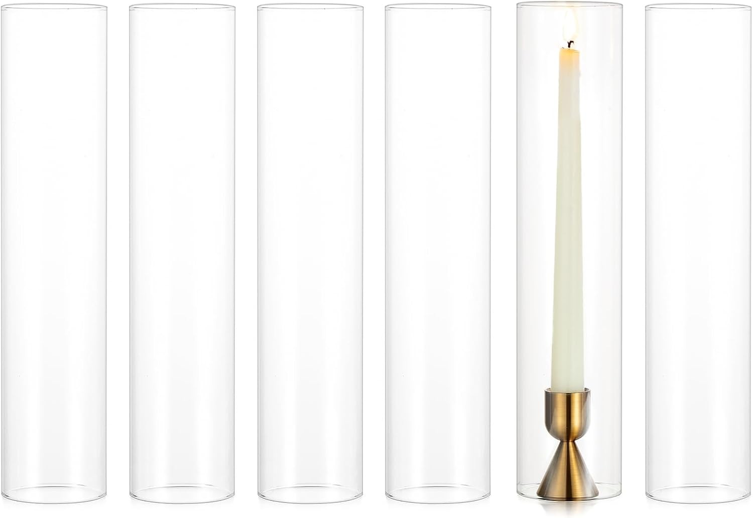 6pcs Hurricane Glass Candle Holder, 12" Tall Clear Glass Candlestick Holders Ta