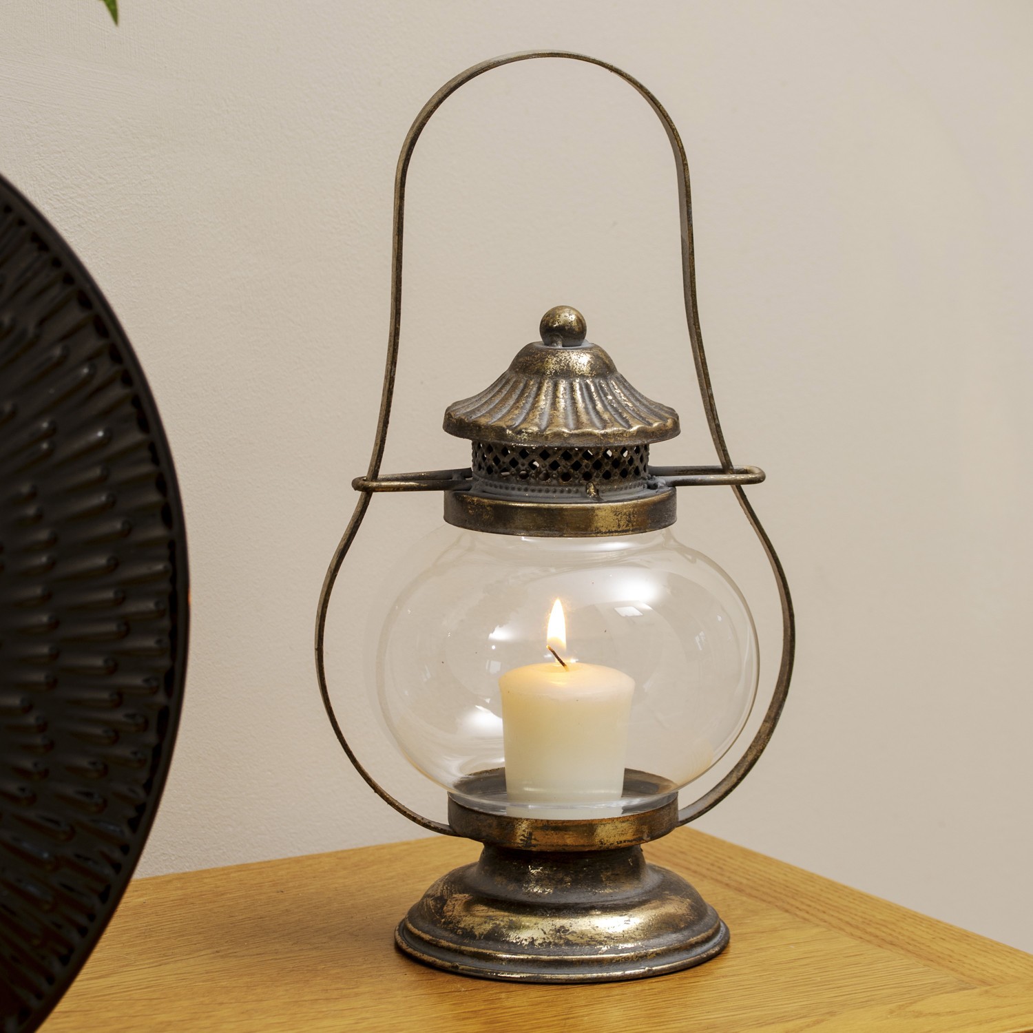 Antique Gold Railway Style Hurricane Lantern Glass Candle Holder Indoor Decor