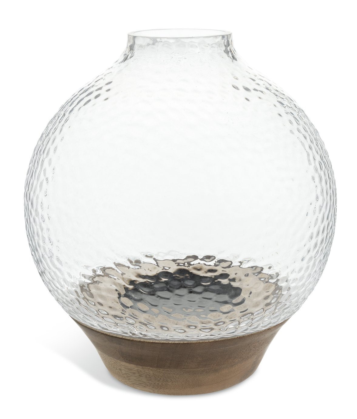 Habitat Hammered Wooden Base Hurricane Candle Holder
