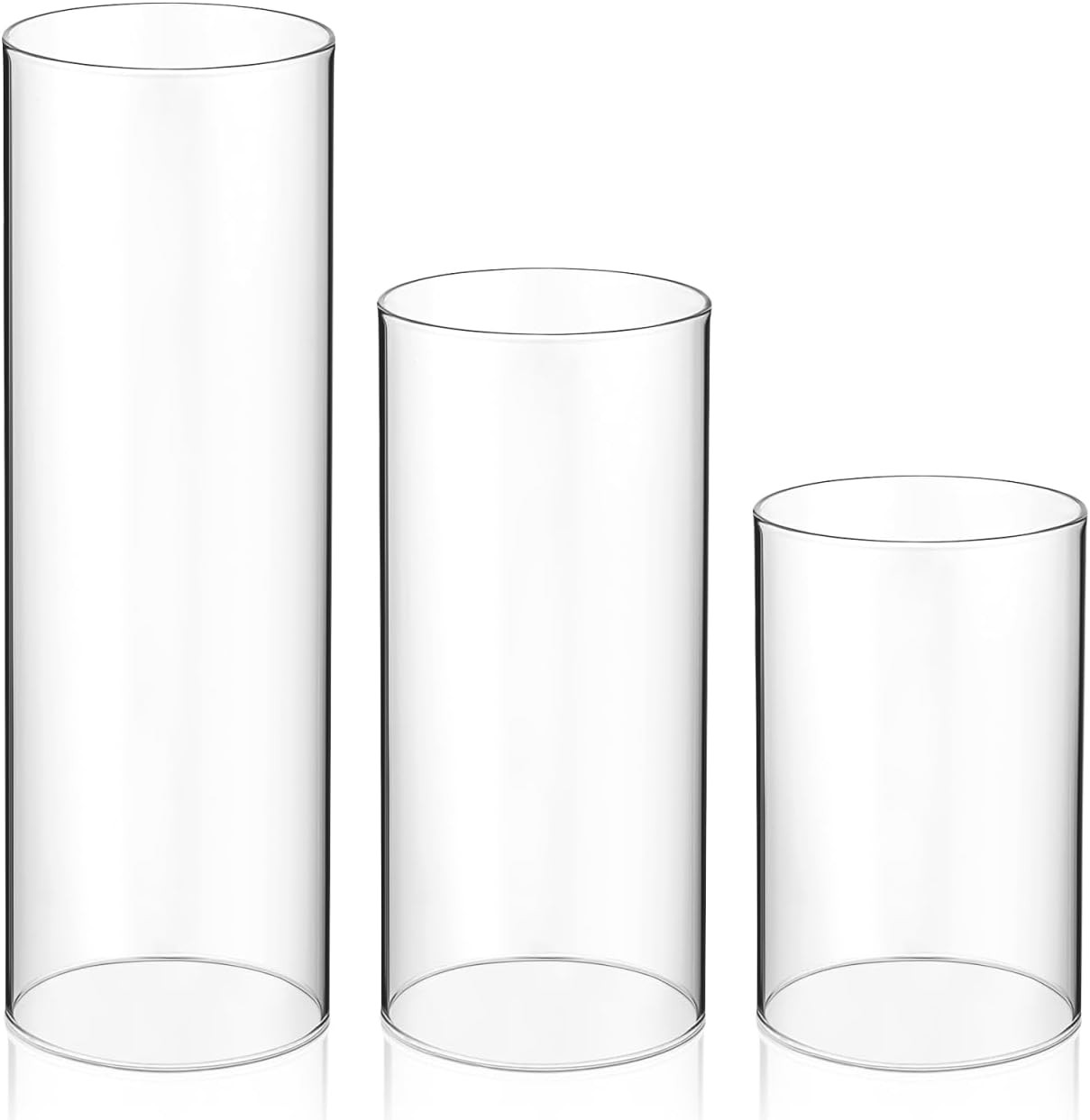 Glass Hurricane Candle Holder, 3pcs Clear Cylinder Candle Holders Bulk for Pillar Candles, Open Ended Glass Candle Pedestal for Wedding Centerpieces Tables, Party, Event(No.01)