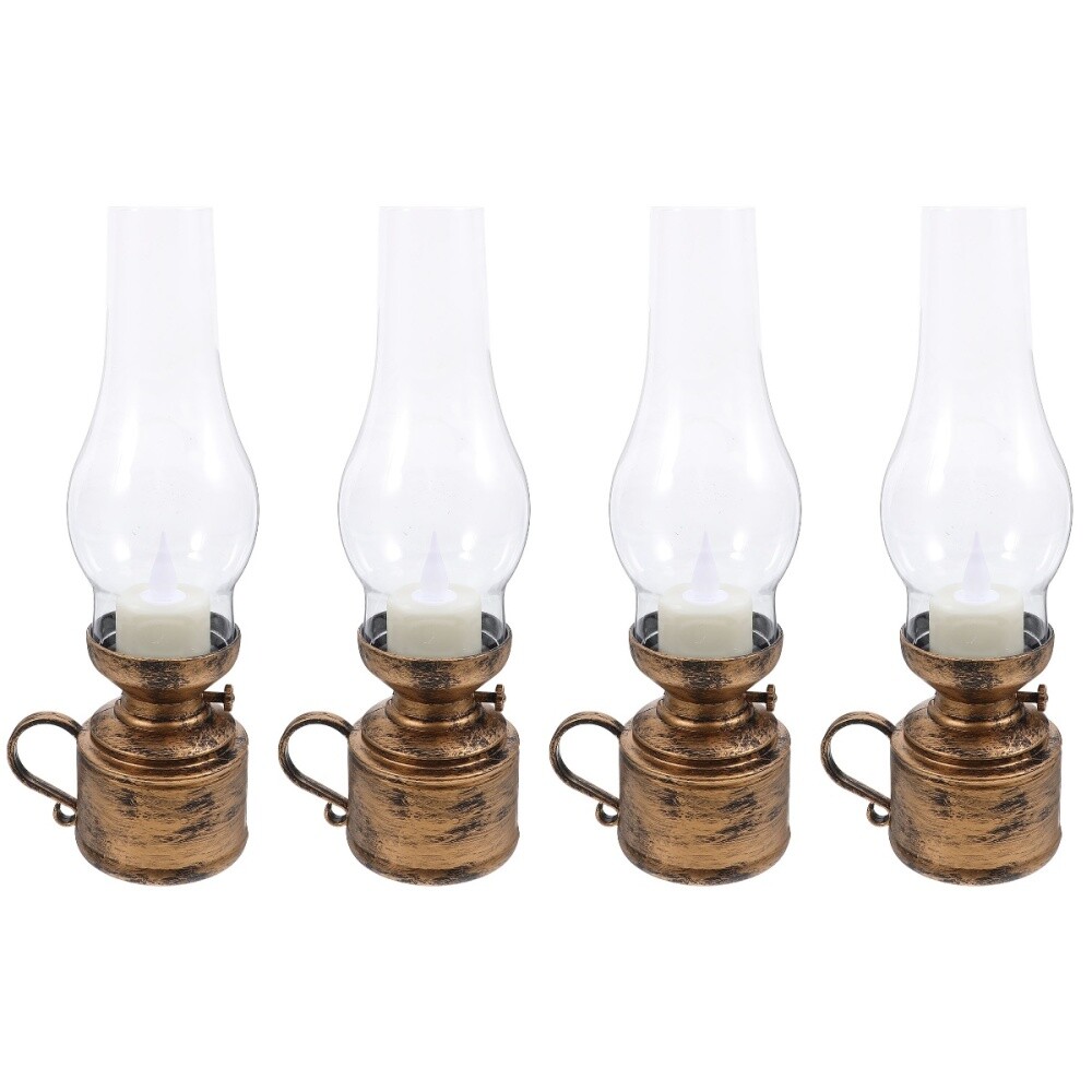 4 Pack Vintage Garden Lantern Clear Kerosene LED Hurricane Retro Lamp