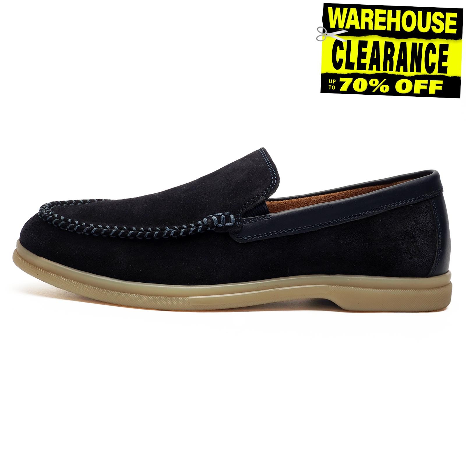 Hush Puppies Leon Mens Suede Leather Slip-on Shoes Casual Dress Loafers Navy