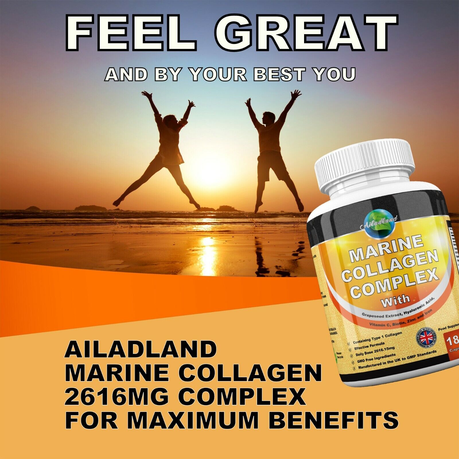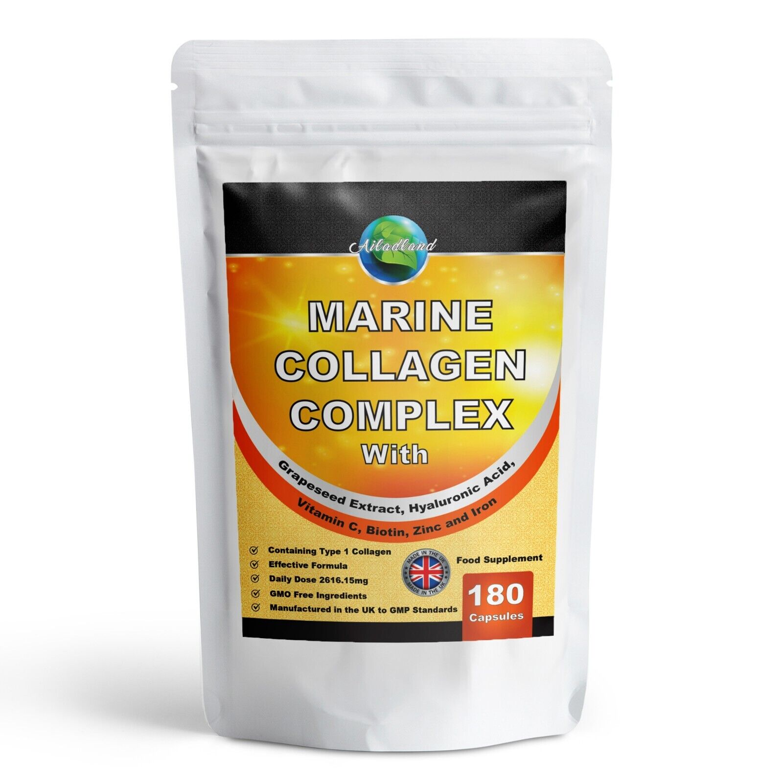 Marine Collagen Complex 180 Tablets 2616mg, Hyaluronic Acid, Vitamin C Capsules