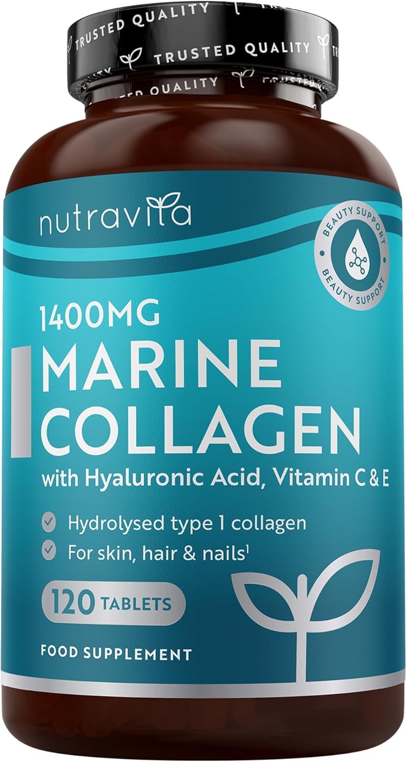 Nutravita Marine Collagen Tablets 1400mg Enhanced with Hyaluronic Acid - Hydrolysed Collagen Supplements for Women and Men - 120 Tablets (2 Month Supply) - with Vitamin C, Vitamin E & Zinc