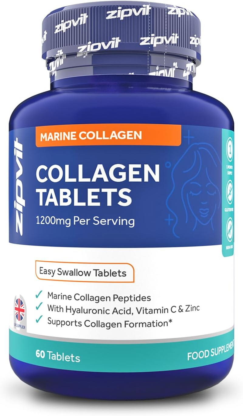 Zipvit Marine Collagen 1200Mg Tablets with Hyaluronic Acid, Vitamin C, and Zinc.